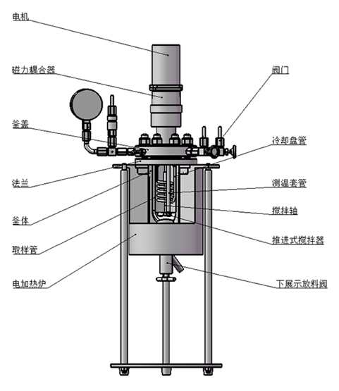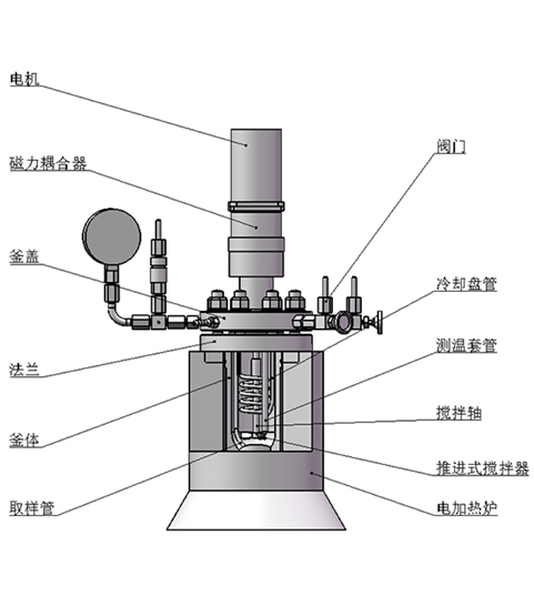 該結(jié)構(gòu)為端面磁力密封裝置,依靠?jī)蓧K強(qiáng)力磁鋼異極相吸的原理通過(guò)磁場(chǎng)穿透密封罩體來(lái)實(shí)現(xiàn)力矩的無(wú)接觸式傳遞,由于電機(jī)直接帶動(dòng)攪拌器,故而其攪拌特點(diǎn)是低轉(zhuǎn)矩高轉(zhuǎn)速(≤1500r/min),適合攪拌低粘度(cp≤2000mpa.s)或固體顆粒物含量較少的反應(yīng)物料介質(zhì)體系。