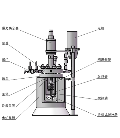 該結(jié)構(gòu)為環(huán)形磁力密封裝置,依靠兩組強(qiáng)力磁鋼異極相吸的原理通過磁場穿透密封罩體來實(shí)現(xiàn)力矩的無接觸式傳遞,由于電機(jī)經(jīng)過皮帶二級(jí)減速,故而其攪拌特點(diǎn)是大轉(zhuǎn)矩低轉(zhuǎn)速(≤750r/min),適合攪拌中高粘度(cp≥5000mpa.s)或固體顆粒含量較多的反應(yīng)物料介質(zhì)體系。